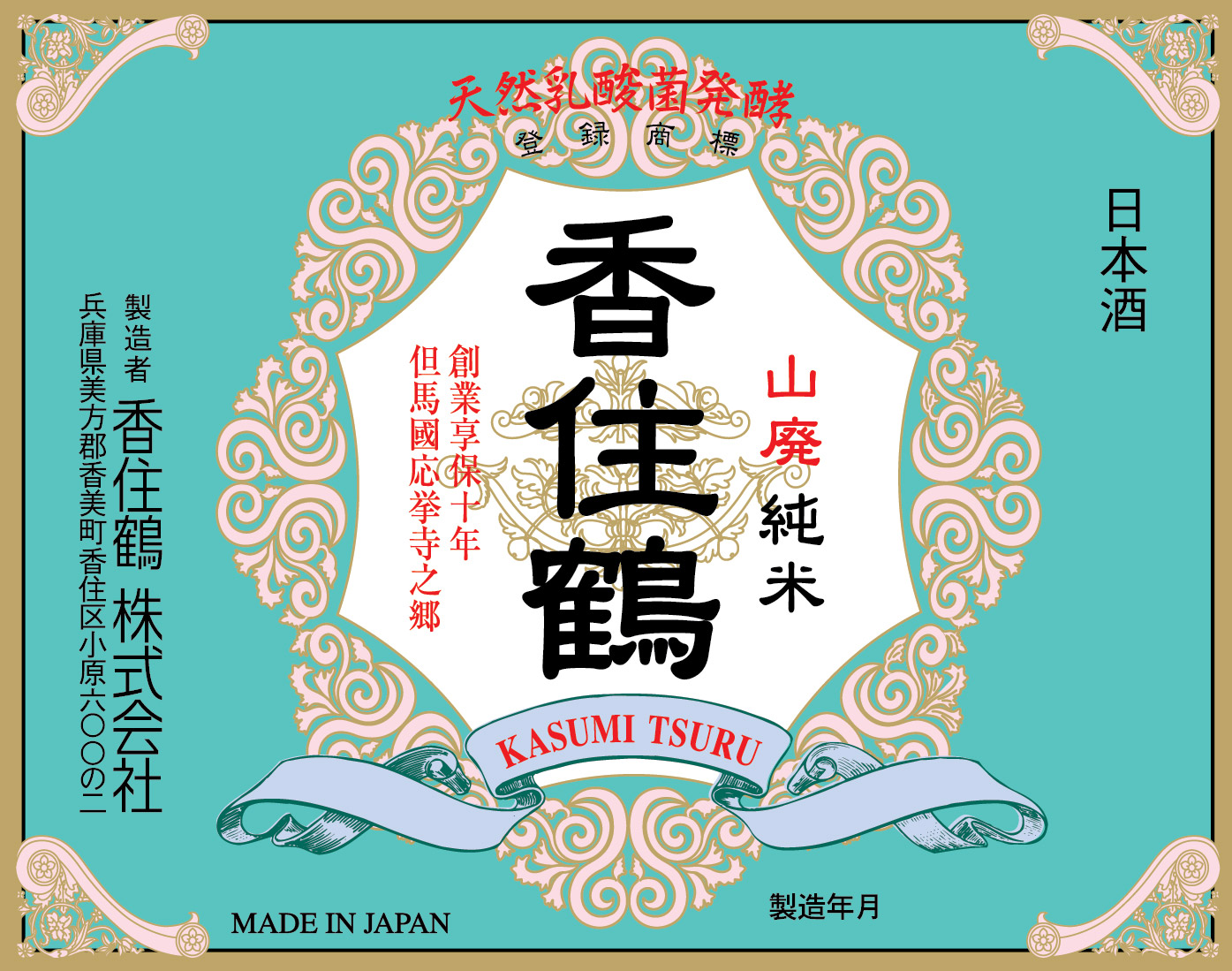 Kasumi Tsuru Yamahai Tokubetsu Junmai Label